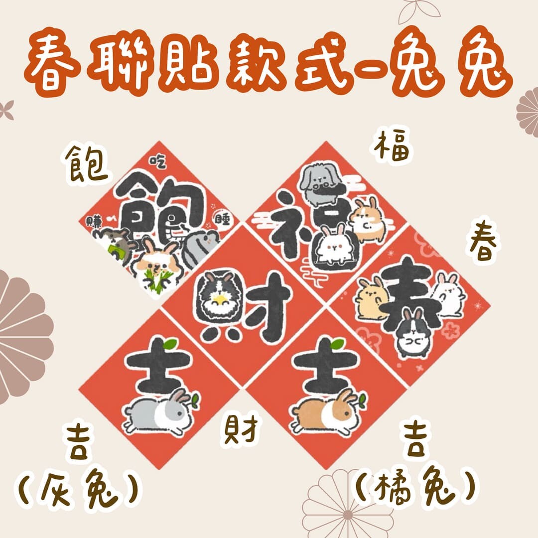【加購限定】天竺鼠&兔兔 春聯貼紙 9cm*9cm #全家都是屁股臉